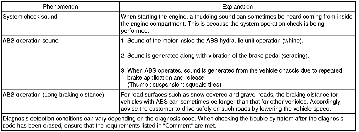 The phenomena listed in the following table are not abnormal.