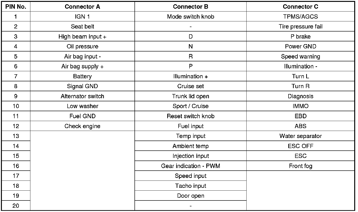 Instrument Cluster / Carrier