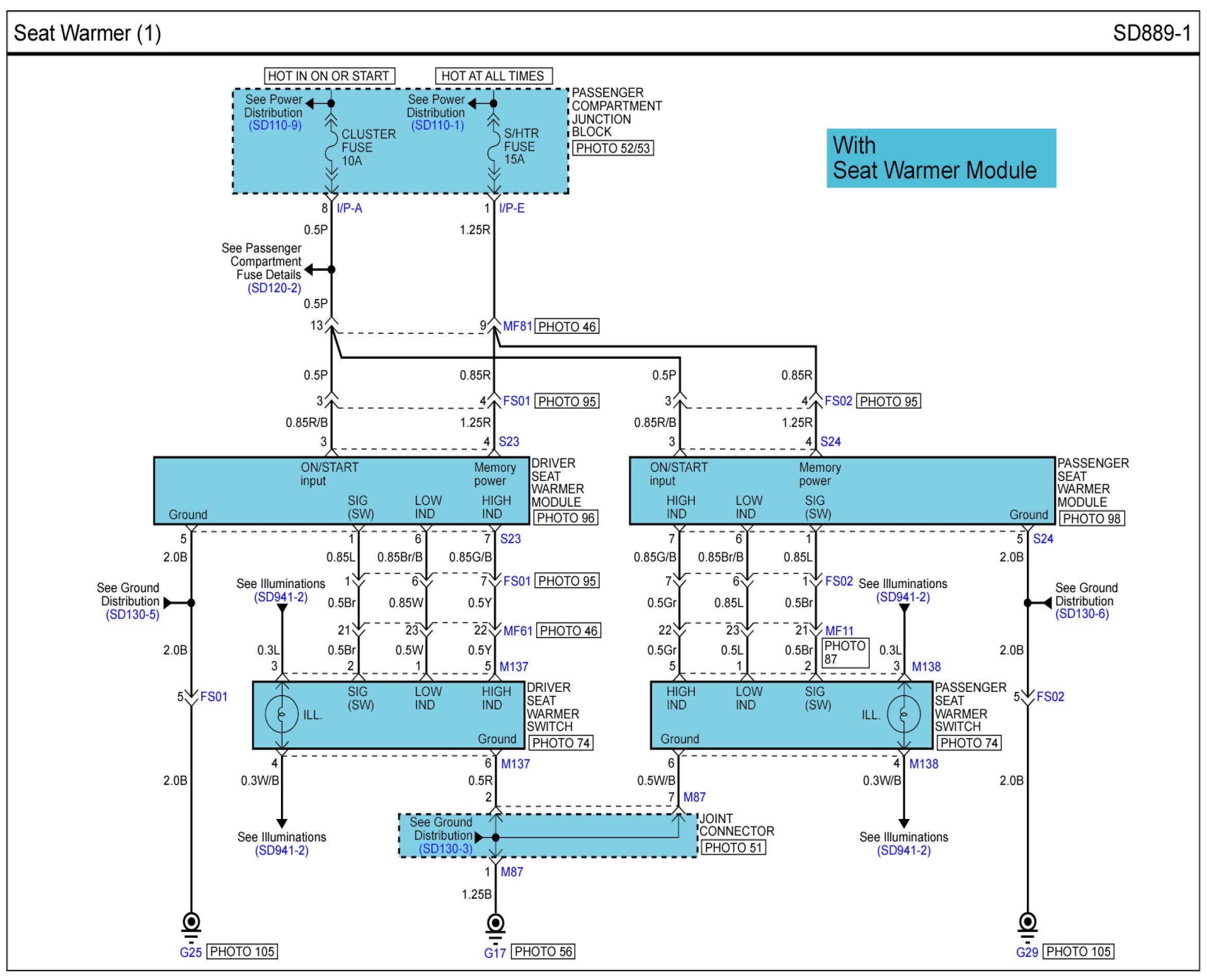 Locations: Location photographs (references to PHOTOS) referred to within these diagrams can be found via the photo number at the vehicle level under Locations by Photo Number. Component Locations