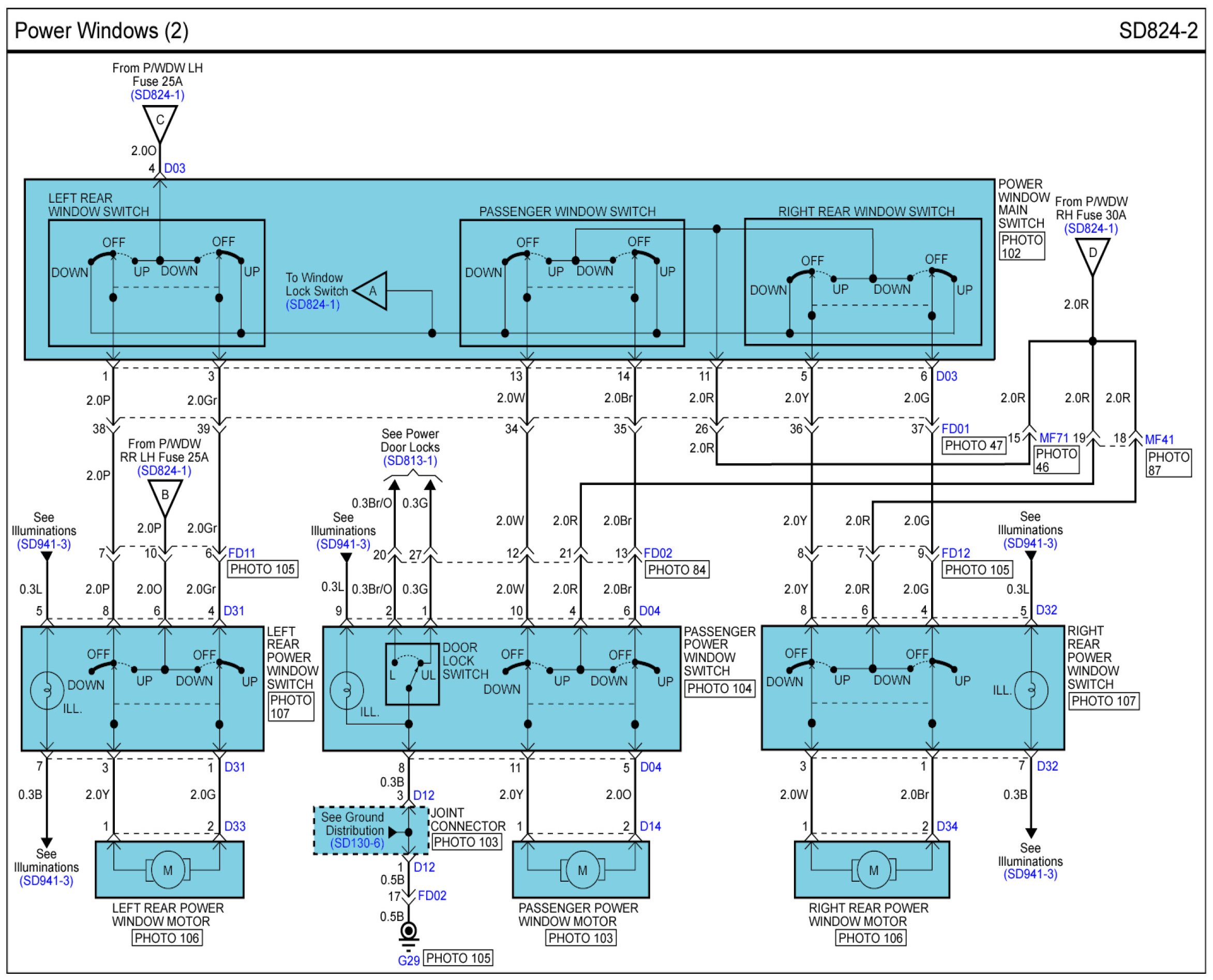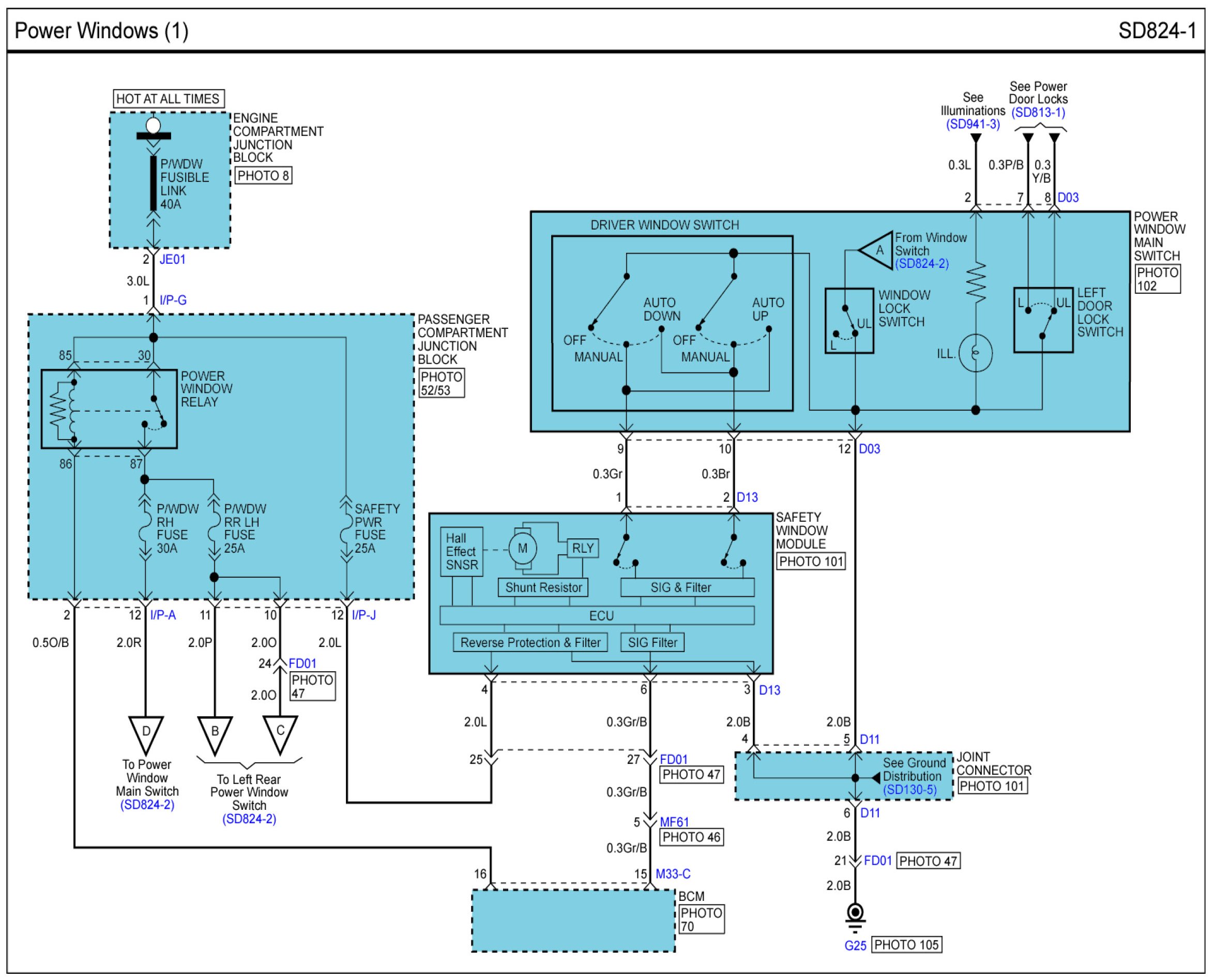 Power Windows Connector Pin Outs: