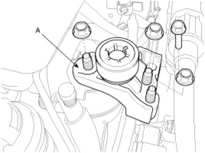 7. Remove the engine mounting bracket (A).