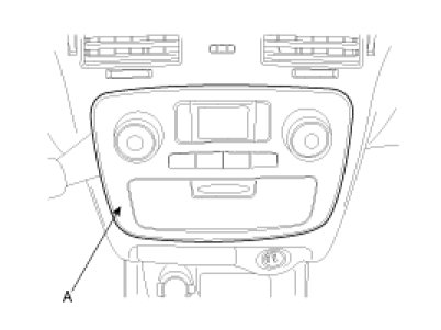 2. Remove the center facia panel (A) after pulling it by using a regular screwdriver (-).