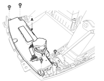 5. Loosen the mounting screw and then remove the center garnish(A).