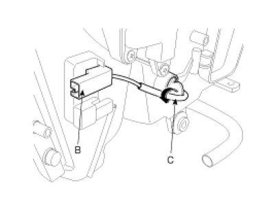 3. Remove the evaporator temperature sensor (C) by pulling it after rotating 90° in a counterclockwise direction.