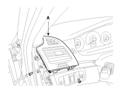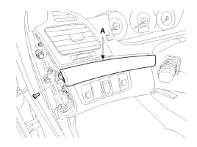 3. After loosening the mounting screw, then remove the crash pad garnish (A).