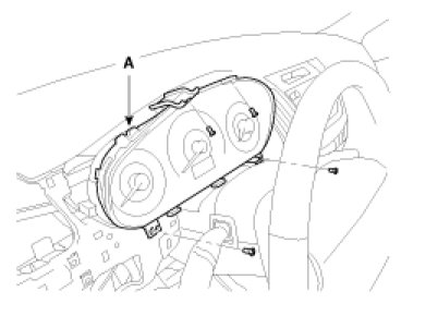 5. After loosening the mounting screw, then remove the cluster fascia panel (A).