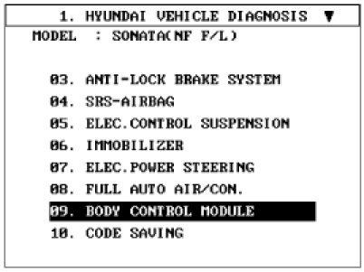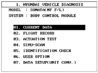 2. To check the input value of rear window defogger switch, select option "BODY CONTROL MODULE".