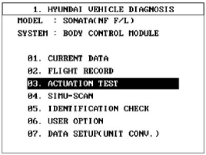 4. To check the input value of hazard lamp switch in force mode, select option "ACTUATION TEST".