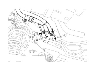 1. Disconnect the fuel filler hose (A), the leveling hose (B) and the vapor hose (C).