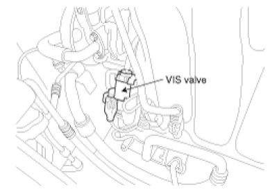 Variable Intake manifold Solenoid (VIS) valve is installed on the intake manifold. The VIS valve controls the vacuum modulator which activates a valve in the intake manifold. The PCM opens or closes this valve according to engine condition .