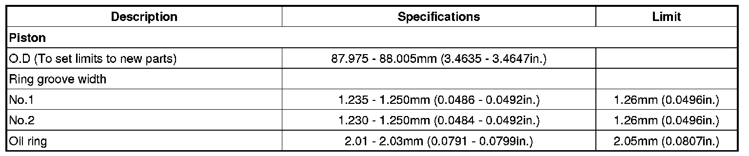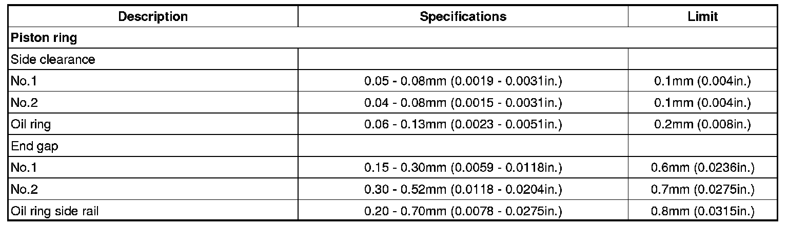 Oil ring 0.06 - 0.15 mm (0.0023 - 0.0059 in.)
