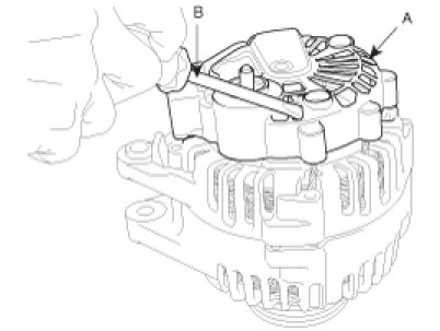 2. Loosen the mounting bolts(A) and disconnect the brush holder assembly(B).