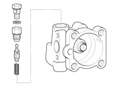 1. Install the flow control spring, the flow control valve and the connector in to the pump body.