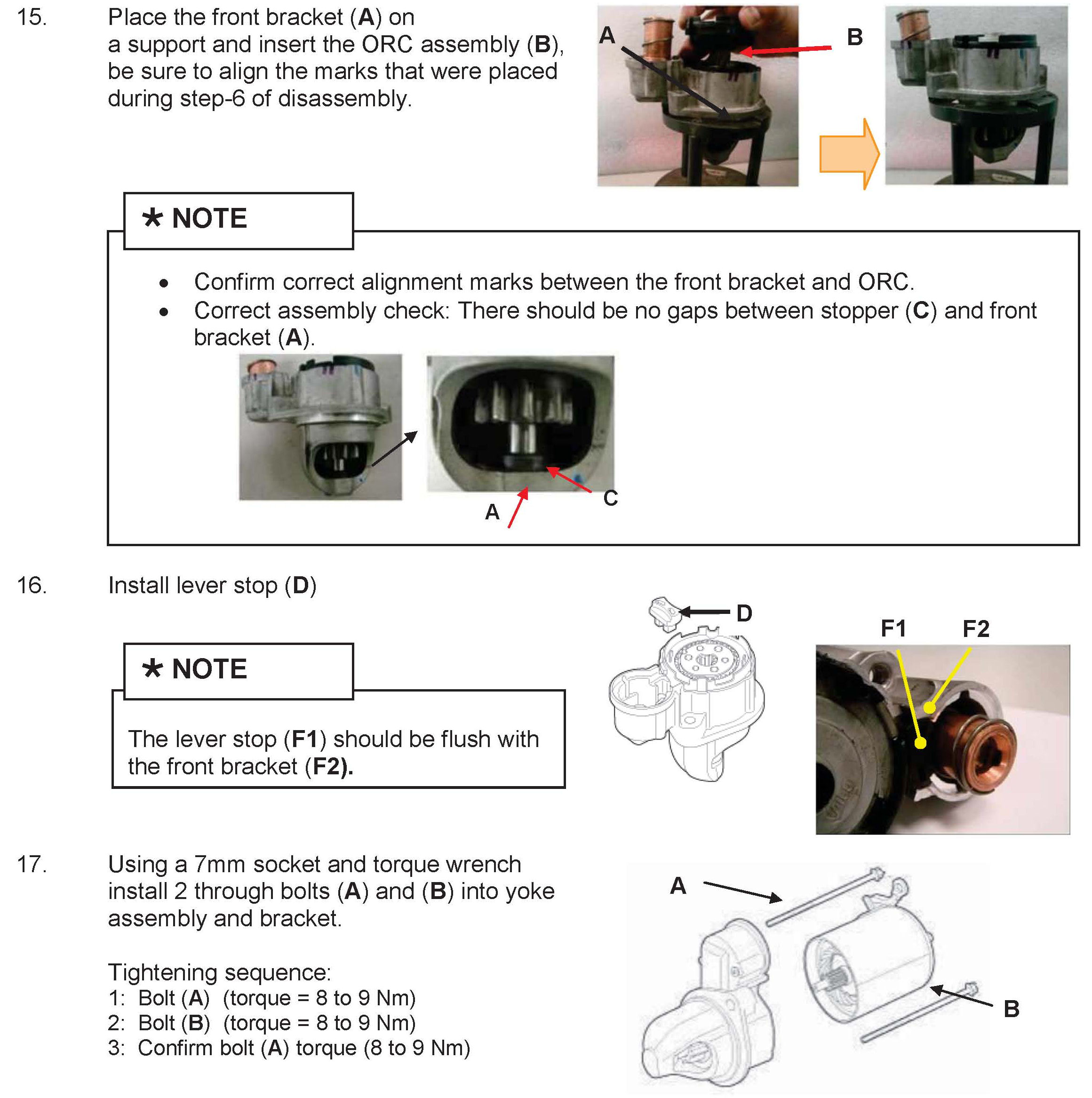 this bulletin, a condition is confirmed requiring the starter assembly to be replaced (other than the lever), reassemble the starter completely (hand tight screws are OK). Describe clearly on the Repair Order why the