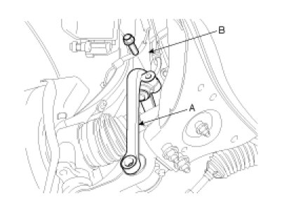 A. Remove the stabilzer link(A) from the fork(B).