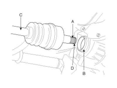 2. Before installing the drive shaft(C), set the opening side of the clip(D) facing downward.