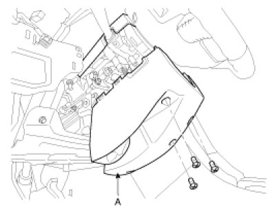 1. Remove the steering column upper and lower shrouds (A) after removing 3 screws.