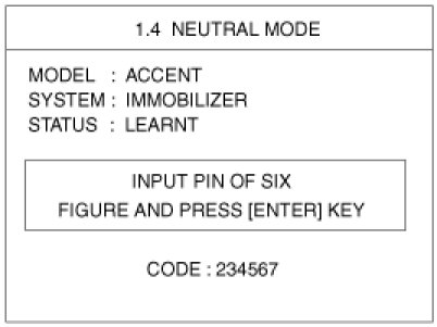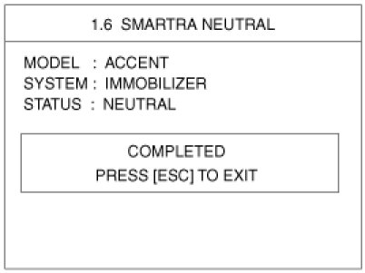 This function is for neutralizing the PCM(ECM) and Key. Ex) when lost key, Neutralize the PCM(ECM) then teach keys. can be set to the "neutral" status by a scanner.If wrong vehicle specific data have been sent to SMATRA three times continuously or intermittently, the SMATRA will reject the request to enter neutral mode for one hour. Disconnecting the battery or other manipulation cannot reduce this time. After connecting the battery the timer starts again for one hour.