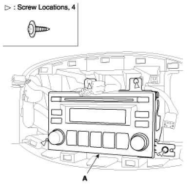 3. Disconnect the audio connector and antenna cable, then remove the audio assembly (A).