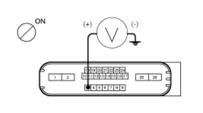 2. Turn the ignition switch ON, measure the voltage between terminal 3 of the ABS control module harness side connector and body ground.