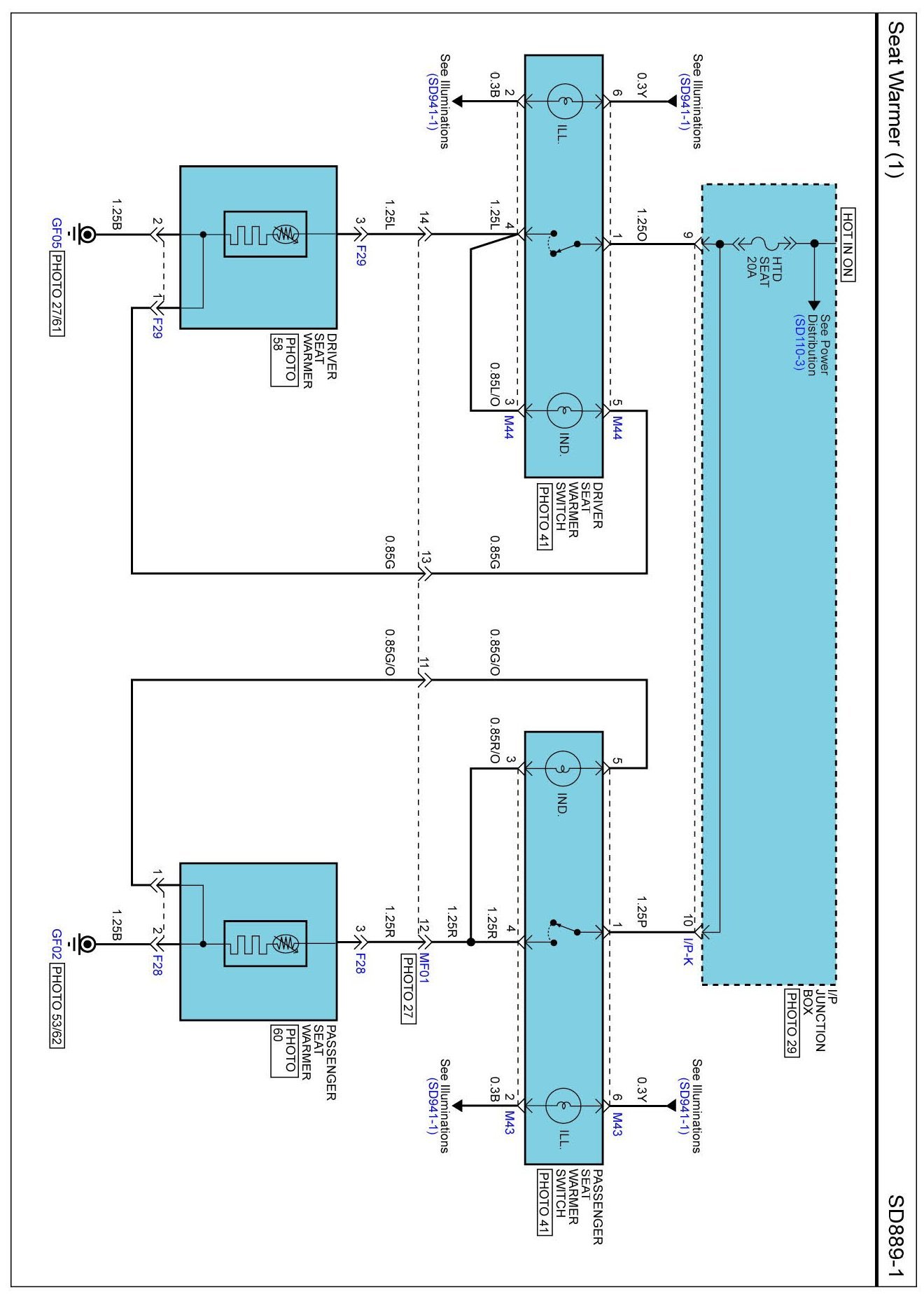 Locations: Location photographs (references to PHOTOS) referred to within these diagrams can be found via the photo number at the vehicle level under Locations by Photo Number. Component Locations