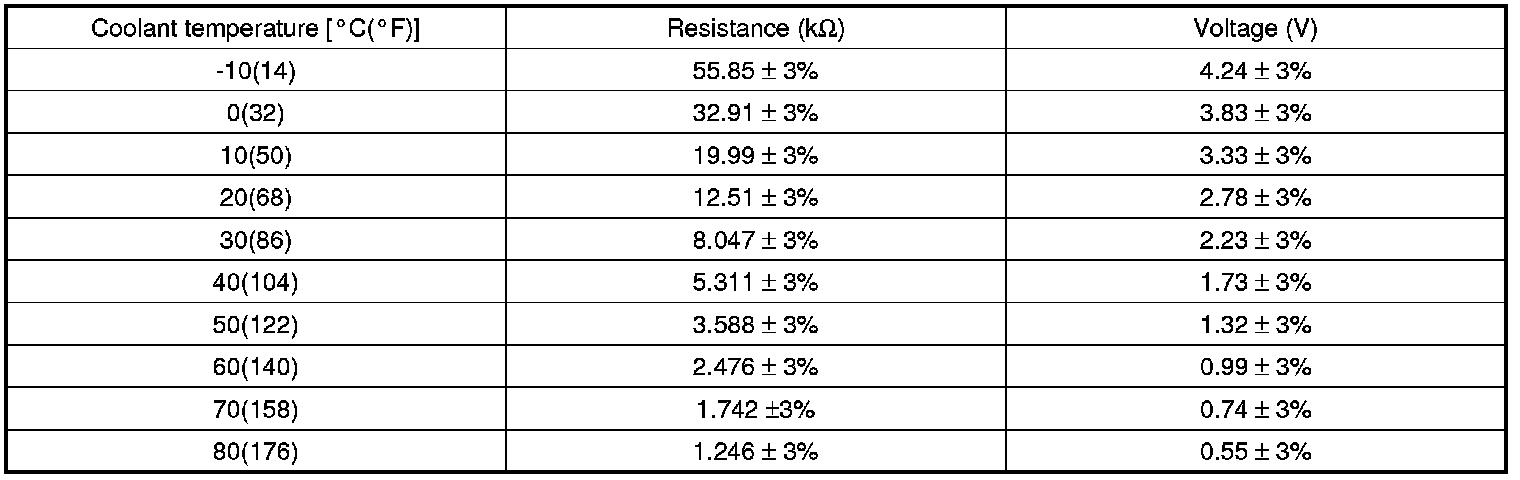 3. If the measured resistance is not specification, substitute with a known-good water temperature sensor and check for proper operation.