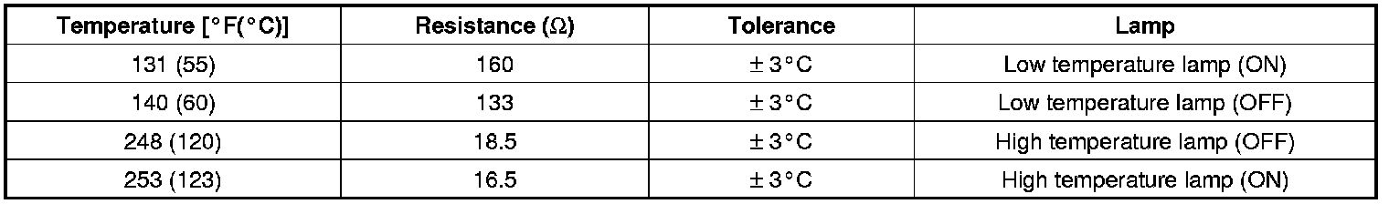 2. If the resistance value is not as shown in the table, replace the temperature sender.