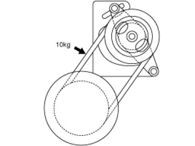 1. Press the V belt, applying a pressure of 98N (10kg, 22lb) at the specified point and measure the deflection to confirm that it is within the standard value.