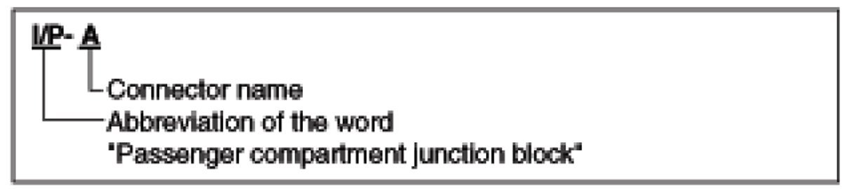 A junction block identification symbol consists of a wiring harness location classification symbol corresponding to a wiring harness location and number corresponding to the connector in the junction block.