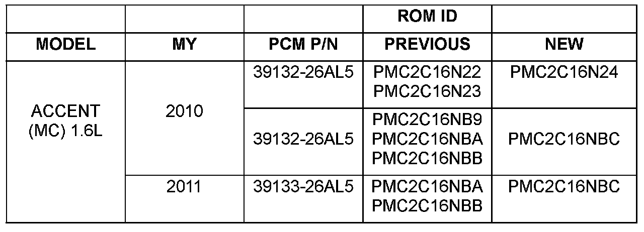 This bulletin provides a procedure to update the TCM with the latest calibration update for 2010 - 2011 Accent 1.6L vehicles with automatic transaxles. The purpose of the update is to improve the torque converter clutch application with cruise control engaged.