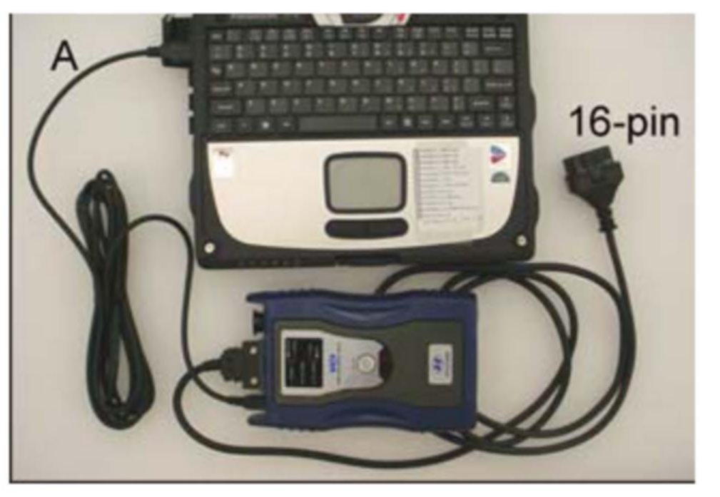 ^ Connect the USB cable (A) between the GDS and the VCI.