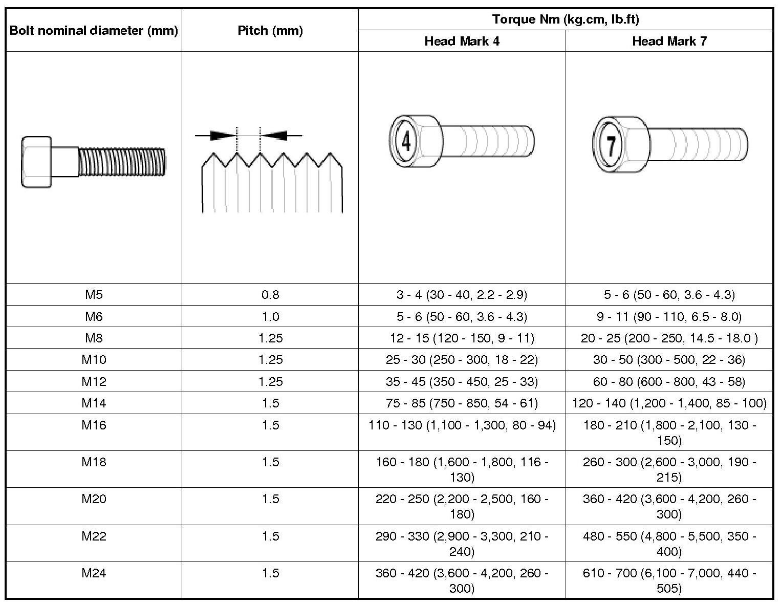 Tightening Torque Table Of Standard Parts