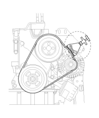 Apply a force of 98N (10kg, 22lb), and measure the deflection between the alternator and the water pump pulley.