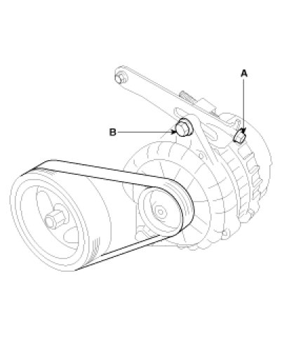 2. Move the alternator to obtain the proper belt tension, then retighten the nuts.