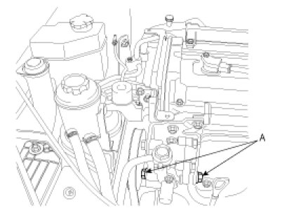 4. Loosen the power steering pump mounting bolt and nut (A), and then remove the power steering pump assembly from the pump bracket.