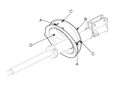1. Install the spring lower pad (D) so that the protrusions (A) fit in the holes (C) in the spring lower seat (B).