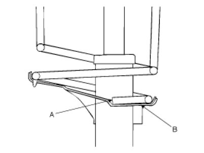 4. After seating the upper and lower ends of the coil spring (A) in the upper and lower spring seat grooves (B) correctly, tighten new self-locking nut temporarily.