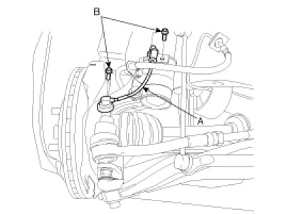 5. Remove the nut (B) from the stabilizer bar link (A).