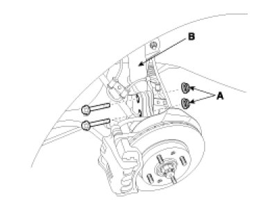 1. Install the strut assembly (B) and then install the strut lower mounting bolts (A).