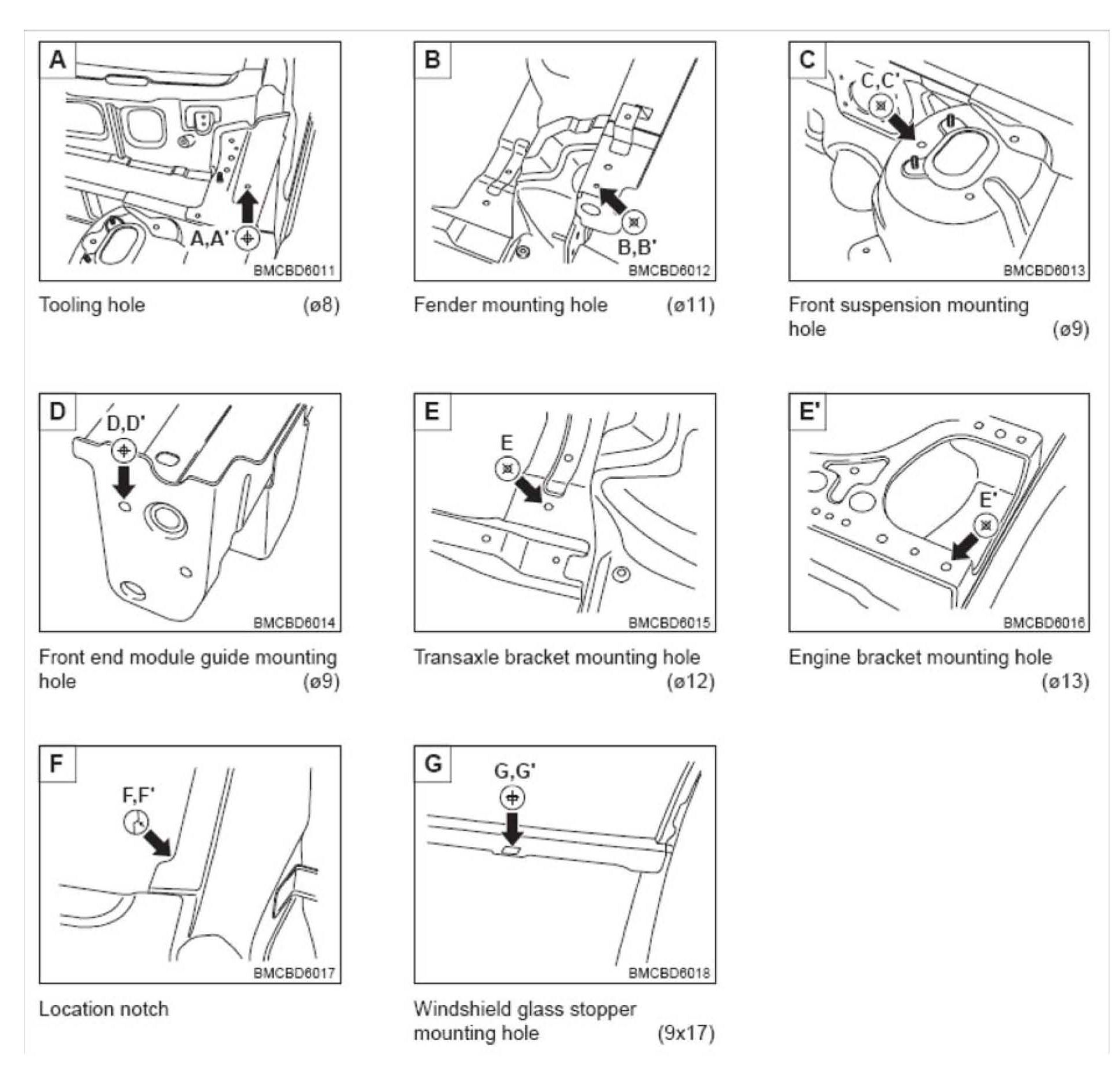 This TSB provides body dimension information for the 4 Door MC Accent. Similar information may be available from suppliers of frame straightening equipment.