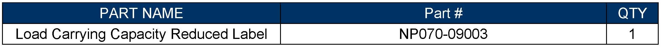Vehicle - Reduced Load Capacity Label Compliance Info.