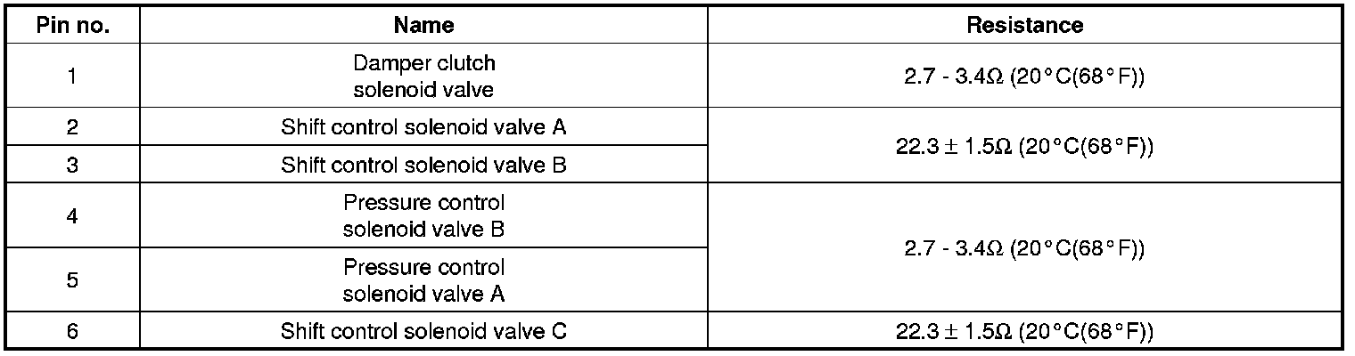 5. Measure the resistance between terminals of the solenoid valve connector on the transaxle case.
