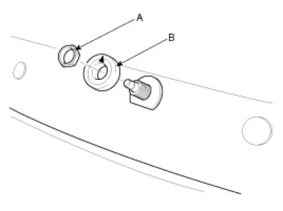 2. Detach the wiper cap (A), and then remove the rear wiper arm after removing a nut (B).