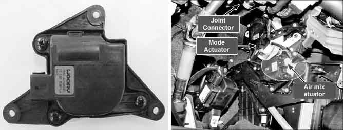Temperature control actuator located at heater unit. It contains temp motor that changes temp door position and potentiometer that monitors position of temp door. Temperature control actuator regulates the temperature by the procedure as follows. Signal from control unit adjusts position of temp door by operating temp motor and then temperature will be regulated by the hot/cold air ratio decided by position of temp door. In operation, potentiometer delivers temp door position transformed into voltage value to A/C ECU.