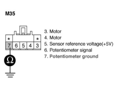 3. Measure resistance between terminal "7" of DR Air Mix actuator and chassis ground.