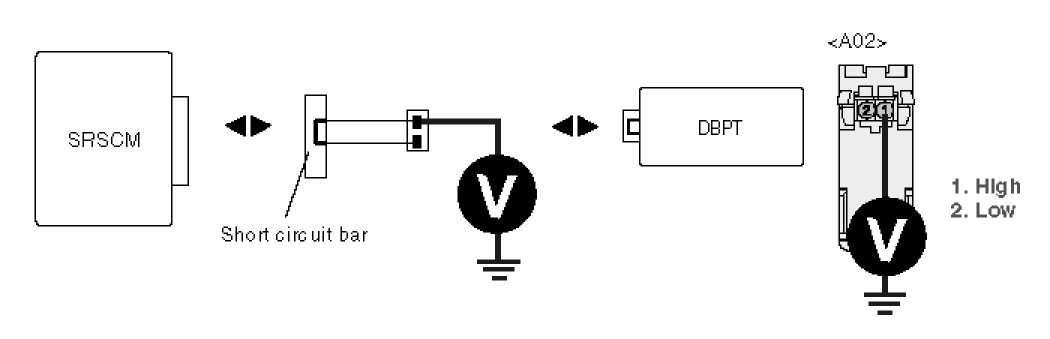 5. Measure voltage between terminal "1 or 2" of the DBPT harness connector and chassis ground.