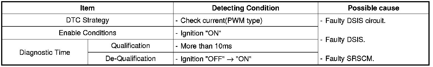 The SRSCM sets DTC B1400 if there is any fault in DSIS circuit.