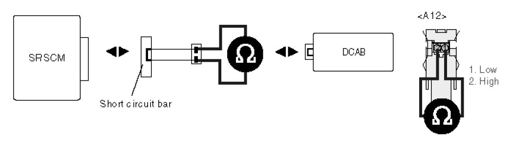 4. Measure resistance between terminal "2" and "1" of the DCAB harness connector.