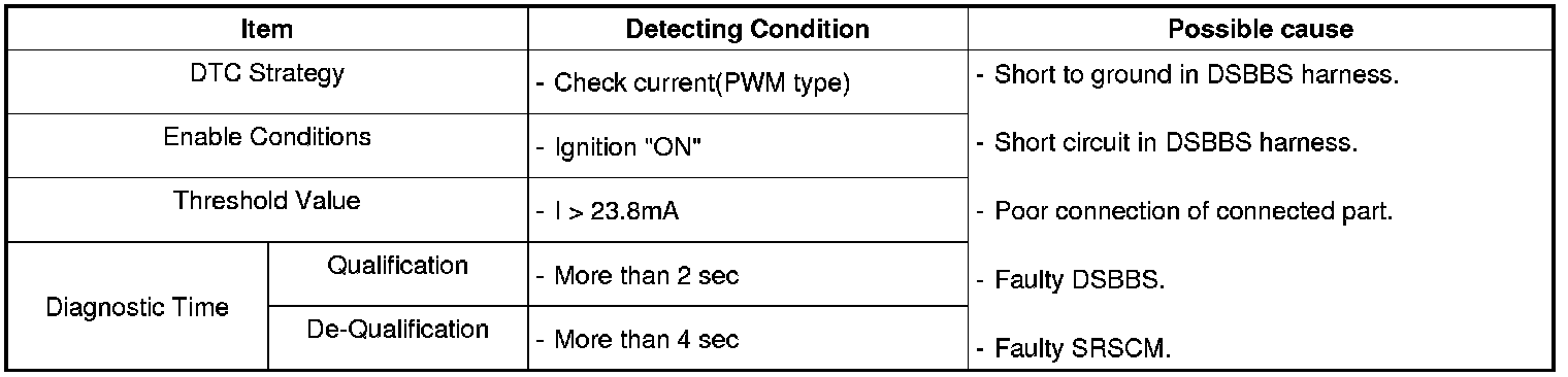 The SRSCM sets DTC B1512 if there is a short or short to ground in DSBBS harness.