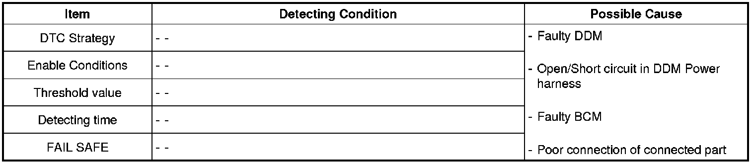 The ECM sets DTC B1605 if DDM haven't transmitted DATA for 10 sec in normal CAN communicating.